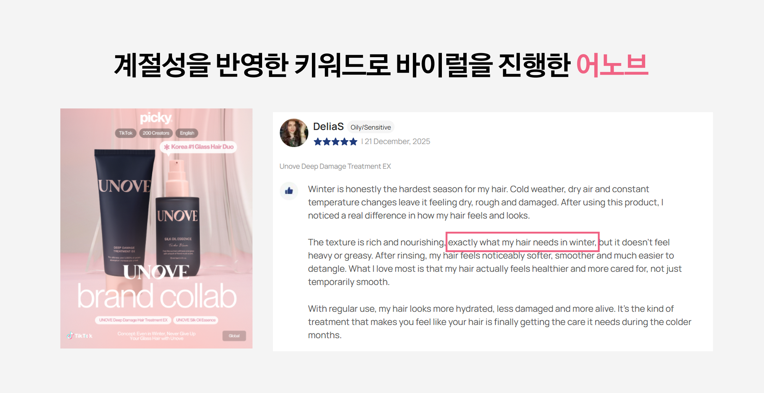ธ๋ธ์ ๊ฒฝ์ฐ, ๋ชจ๋ฐ์ด ๊ฑด์กฐํ๊ณ ํธ์ํด์ง๊ธฐ ์ฌ์ด ๊ฒจ์ธ ์์ฆ ๋ฐ์ด๋ด์ ์ํด โWinter glass hairโ ํค์๋๋ฅผ ์ง์ค์ ์ผ๋ก ๋ด์ธ์ ์ฝํ